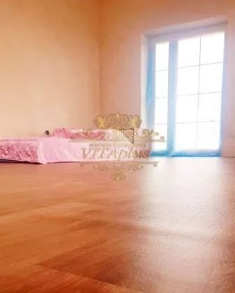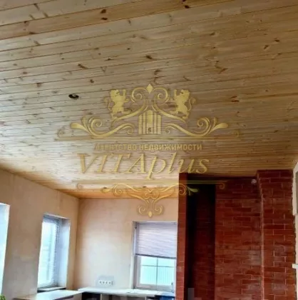 1 этаж оштукатурен под чистовую отделку,установлен потолок,полтелен пол.