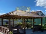 - Беседка из бруса (150*150, ель) 30 кв2 на монолитной плите, в которой имеется большой стол+ две скамьи, выполненные из сосны на металическом каркасе, мангал из стали 3 мм фирмы Gratar с совком и кочергой.