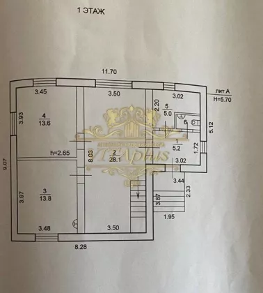 - 3 изолированных комнаты, изолированная кухня, 2 холла, 2 санузла (один большой с душевой кабиной), котельная, коридор