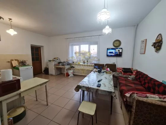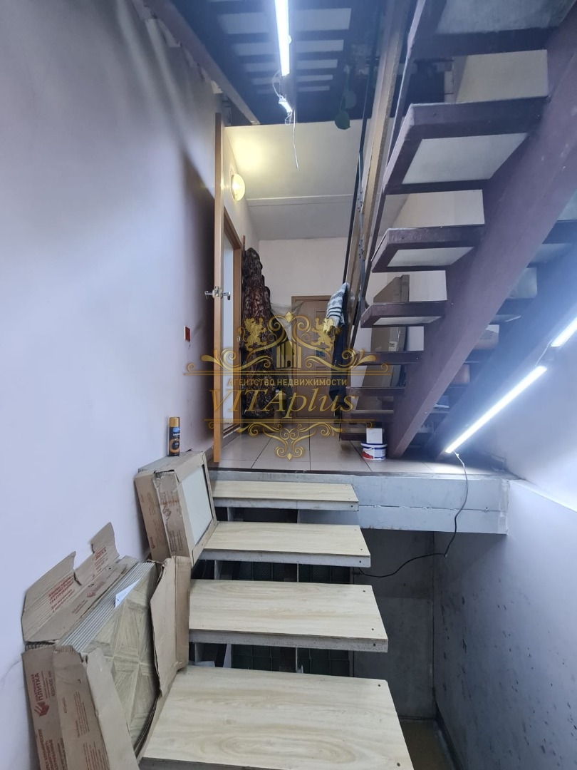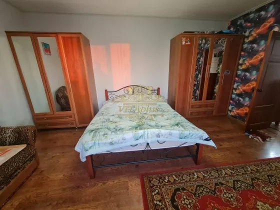 На первом этаже: комната (28кв.м), прихожая, кухня, санузел, есть вход в теплый гараж и на хоз.двор.