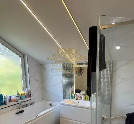 - 2 санузла с фирменными душевыми зонами фирмы DOFINY, сделанными по индивидуальному заказу и с ванной на 2 этаже, подвесные унитазы