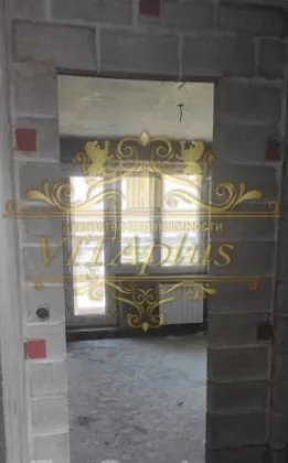 сделана стяжка пола, установлена сантехника, стены выровнены.