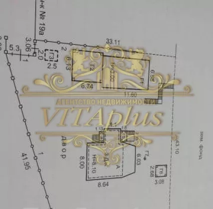 Вдоль забора посажены 7 метровые голубые ели, есть небольшой огород и сад