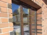Первый этаж из строительного кирпича + утепление 50мм базальтовая плита в 2 слоя, и через базальтопластиковые связи(исключающие мосты холода) облицован кирпичом(баварская кладка, облицовка выполнена на специальном кладочном растворе, что исключает возможность высолов на стенах в дальнейшей эксплуатации). Перекрытие по деревянным балкам(100 мм плиты базальтовые в 2 слоя), надёжная вальмовая кровля, мягкая черепица.