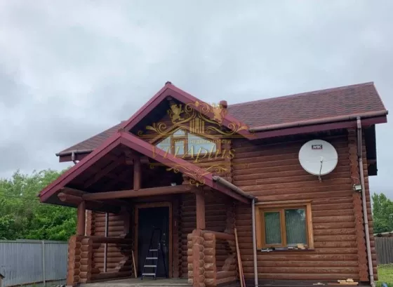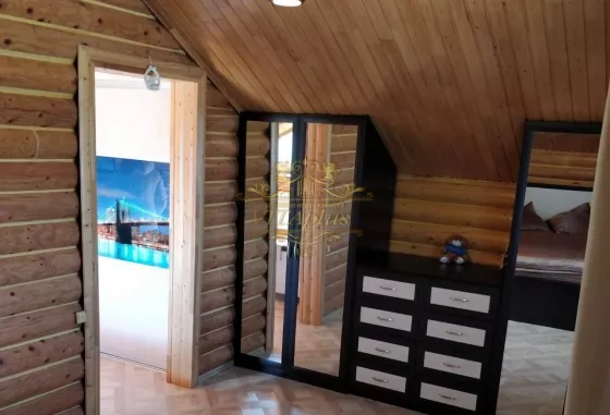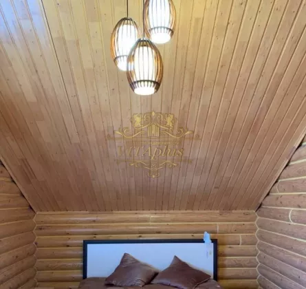 - Площадь дома 114 кв.м, построен из дерева.
